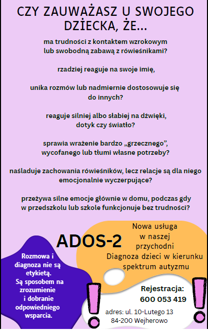 znajdziesz w nim najważniejsze informację o objawach spektrum autyzmu. Jeśli zauważyłeś u swojego dziecka niepokojące objawy lub chcesz rozwiać wątpliwości, skontaktuj się z nami i umów diagnozę.